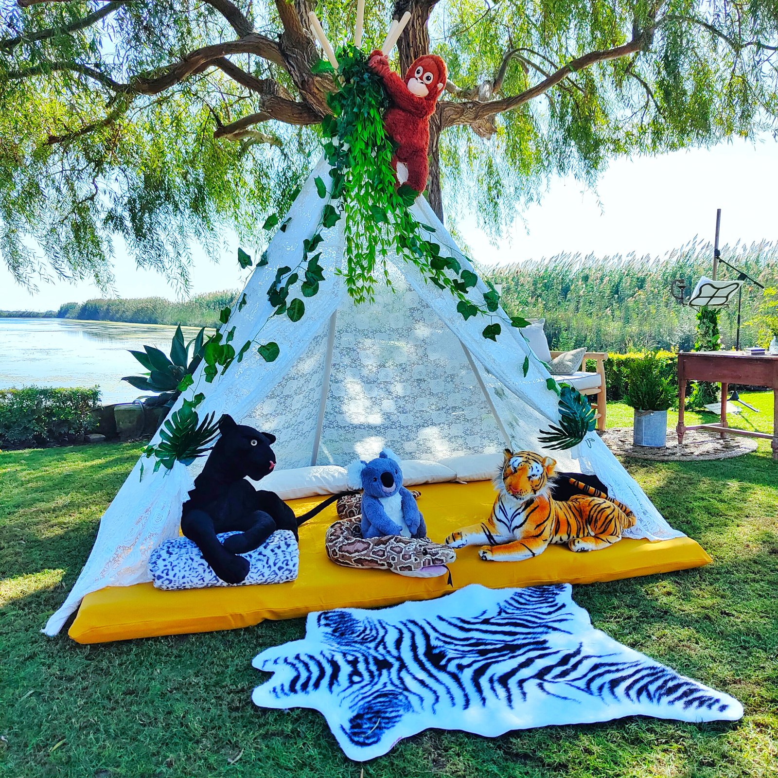 Alquilamos tipis infantiles totalmente equipados y los montamos en tu casa o espacio de celebración.